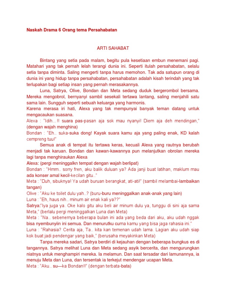 Contoh Naskah Drama Persahabatan Untuk 3 4 5 6 7 8 Orang from i1.wp.com Maybe you would like to learn more about one of these? We did not find results for: Check spelling or type a new query. Naskah drama 6 orang tentang stop bullying singkat.