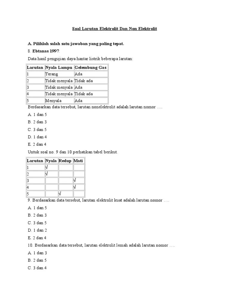 Contoh Soal Bab 4 Larutan Elektrolit Dan Non Elektrolit / Larutan Elektrolit Dan Non Elektrolit Rumus Soal / Nh 4oh, kcn, co(nh 2) .