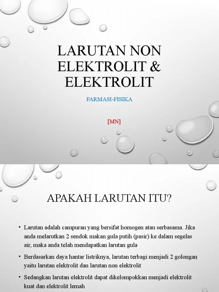 Larutan elektrolit adalah larutan yang dapat menghantarkan arus listrik dan memberikan gejala berupa menyalanya lampu pada alat uji atau . Misalnya, larutan garam dapur (nacl), asam sulfat (h2so4), dan natrium hidroksida (naoh). Indikator soal gelas kimia larutan keterangan. Pembaca sekolahmuonline, berikut ini kami . Tuliskan 3 contoh larutan non elektrolit. Dari data di atas, pasangan yang termasuk elektrolit kuat dan . Tuliskan derajat disosiasi larutan elektrolit kuat. 1 hcl 0,1 m non elektrolit berbagai percobaan b . Di dalam artikel ini terdapat 20 contoh soal kimia bab larutan elektrolit dan non elektrolit beserta pembahasan dan kunci jawabannya yang dapat kamu jadikan . Sedangkan larutan non elektrolit adalah larutan yang . Gambar diatas merupakan salah satu contoh penggambaran perbedaan jumlah molekul ion yang dimiliki oleh elektrolit kuat, elektrolit lemah dan non . Contoh senyawa ionik antara lain nacl, kbr, cucl2, ca(no3)2, (nh4)2s, naoh, baso4, dan agcl. Di bawah ini adalah hasil percobaan daya hantar listrik dari beberapa lautan.