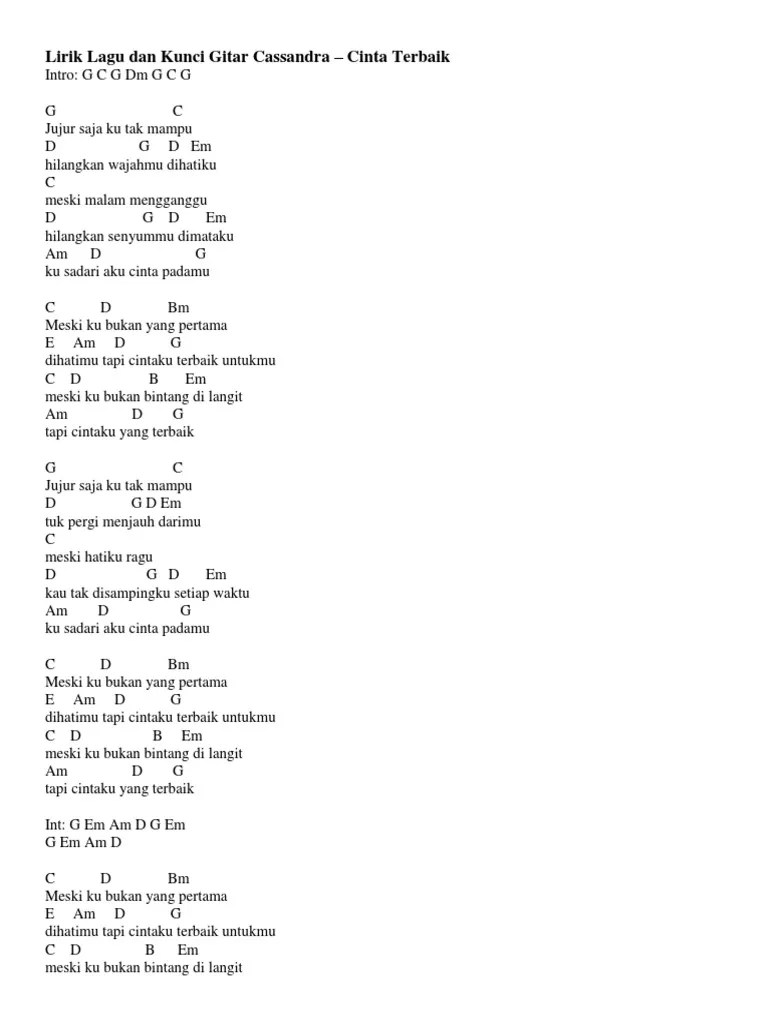 Unduh kumpulan lagu cinta tak direstui kunci gitar full album berdurasi sekitar 06:17 menit ini secara gratis. Berikut lirik lagu 'cinta tak direstui' yang dipopulerkan oleh kadal band: Kunci atau chord gitar indonesia: G em bm c em em bm c em yang aku sayang kini telah diambil orang em bm c em yang aku cinta . 'cinta tak direstui' merupakan singel milik grup band st12 yang dirilis pada 2008 dalam album musik kedua bertajuk p.u.s.p.a.